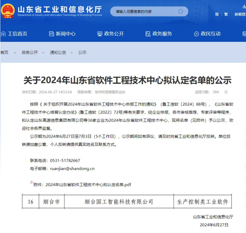 近日,山東省工信廳公示了2024年山東省軟件工程技術(shù)中心名單,全省共36家企業(yè)入圍,煙臺國工智能科技有限公司成功入選。