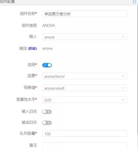 首先,我們需要在數據大腦系統中進行流程的搭建,思路是從數據庫中讀取數據后,將數據投入到單因素方差分析組件中,然后對算法運行所需要配置的參數進行配置,下圖是對數據庫讀取組件的配置:
