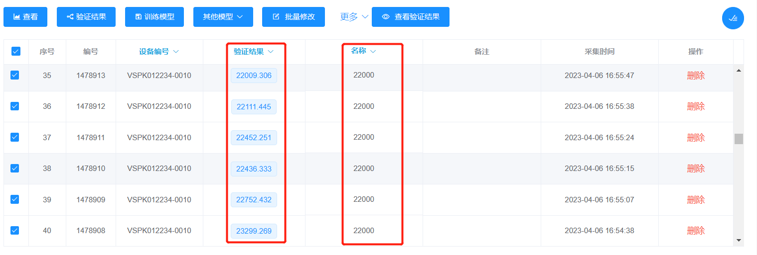 將所采集到的每組數據取10條進行查看分析,選取線性關系較為合適的通道使用線性回歸的方式進行訓練模型,模型訓練成功后,取全部數據進行檢驗,以30000ppm和20000ppm兩組數據檢測結果為例,如下圖: