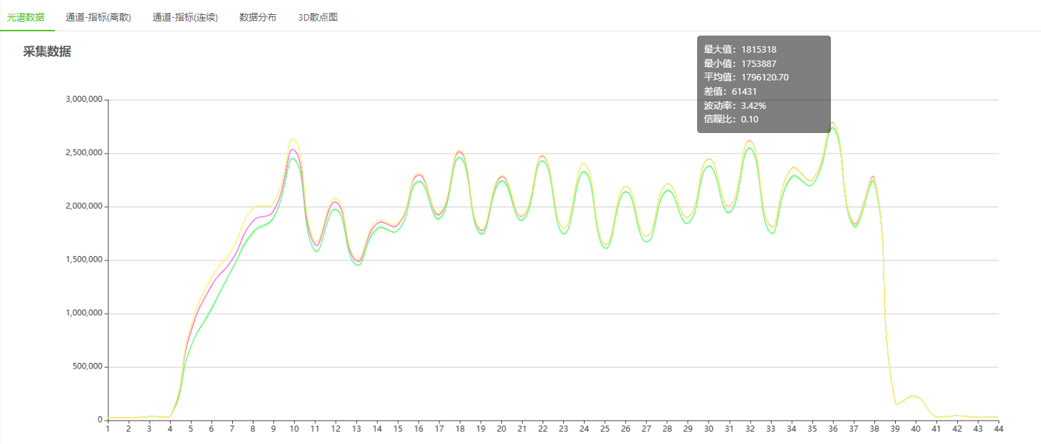 通過光譜對物質(zhì)進行檢測產(chǎn)生數(shù)據(jù),上傳至數(shù)據(jù)大腦平臺,數(shù)據(jù)大腦將產(chǎn)生的數(shù)據(jù)進行分析可以實現(xiàn)定量檢測、定性檢測、一致性分析三種功能。