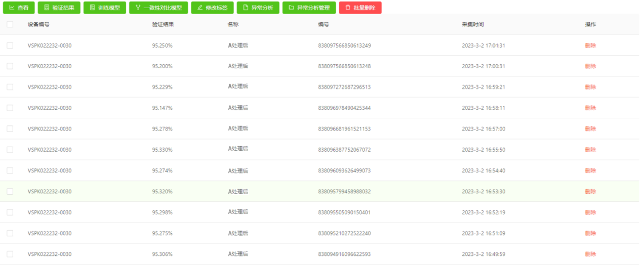 驗證方案:將A處理前溶液數(shù)據(jù)訓練一致性模型,取A處理前后溶液數(shù)據(jù)進行檢測驗證。